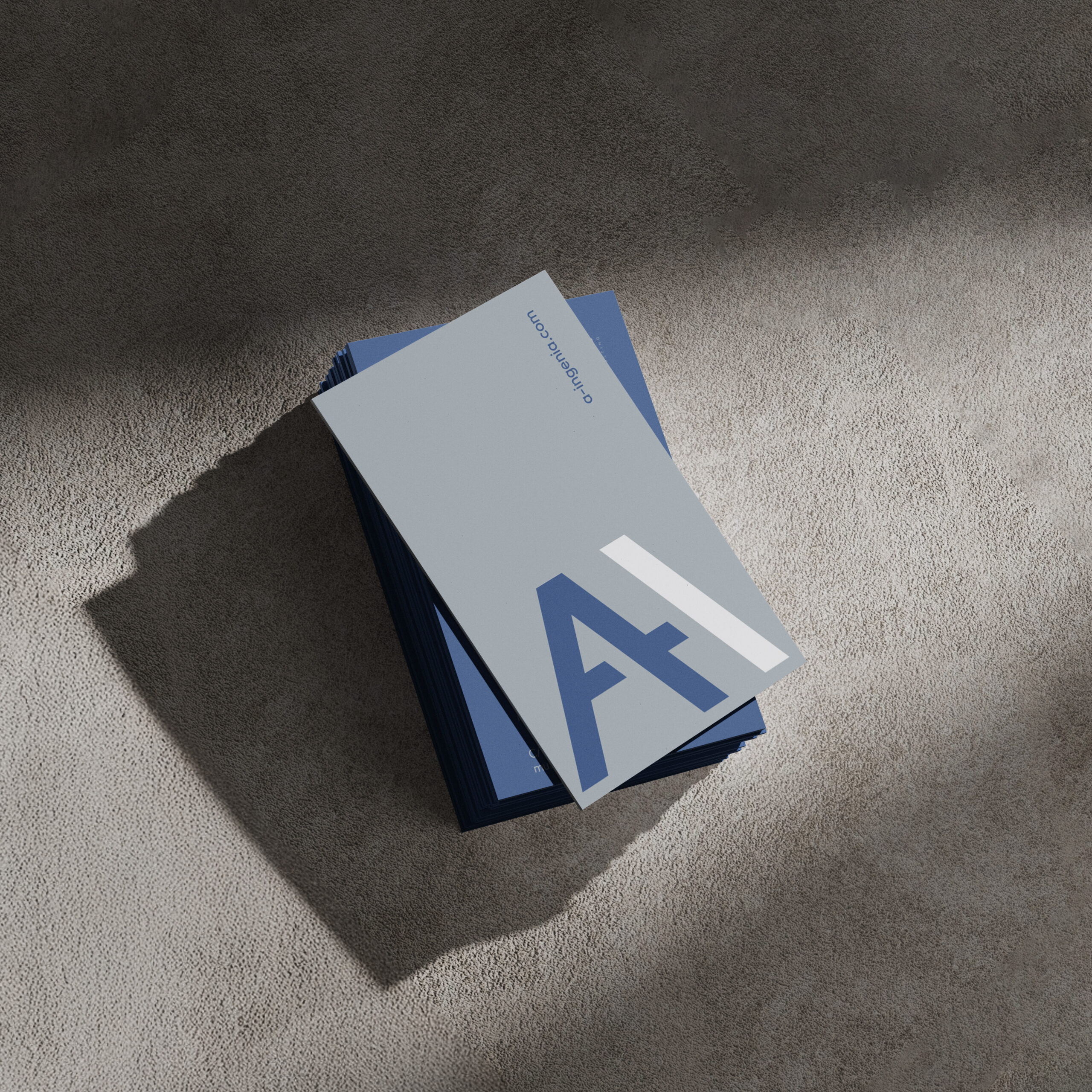 Basándonos en esta solidez, decidimos crear una estructura integrada que uniera la «A» y la «I» del propio nombre, aportándole una ligera inclinación a la «I» conseguimos formar entre los dos elementos la forma geométrica más sólida, el triángulo.